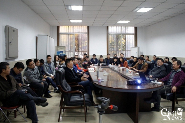 接着,严猛博士针对桥梁工程行业热点问题及桥梁检测行业发展现状进行了分析,对如何开展科研工作,提出“以生产决定研发、以研发促进生产、以公司管理研发”来提高研发,同时介绍了现阶段快速加固项目、桥墩防撞项目以及信息化建设项目等进展。严猛博士的汇报开阔了在座研究生的思路,倡导团队研究生潜心钻研,巩固理论基础、做到多看书、多思考。会议过程中,参会人员积极讨论,学术氛围浓厚。